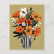 Earthy yet vibrant, tangerine florals with olive green stripes are cleanly presented on a cool white base.