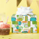 Mid-Century Modern Abstract in orange, lime and teal.  Background colour is customisable.