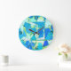 Mid-Century Modern Abstract, Aqua & Cerulean Blue Large Clock