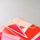 Wrapped canvas in a Kandinsky-inspired, Mid-Century Modern abstract, geometric, composition in shades of soft coral pink, accented with coral orange and fuchsia pink