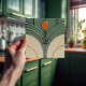 This exquisite mid-century modern ceramic tile is a loving homage to the time-honoured Arts and Crafts movement. Expertly crafted in our Barcelona workshop, it features abstract symmetrical shapes and imitates the captivating allure of mid-century modern faux relief tiles. The symmetrical designs echo a harmonious balance, the ideal expression of abstract aesthetics of mid-century modernism.