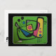 Pop Art Painter Jamie Roxx painting 'Mid Century Modern Abstract num 4' on a Postcard