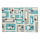 Retro Mid Century Modern Abstract Pattern in Blue Grey & Cream.