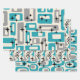 Retro Mid Century Modern Abstract Pattern Black Blue & Grey.