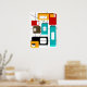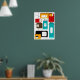 Mid-Century Modern Abstract art poster large 18"x24" in red, black. gold and teal. Perfect poster for your mid-century modern home decor. *All sizes available