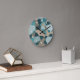 This midcentury art inspired pattern shows rock-like shapes in layers, creating shades of teal, blue-green and gold.