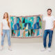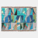 Mid-Century Modern abstract throw blanket, geometric, composition in blue, turquoise, aqua and Earth neutrals, with grey and aqua predominating