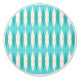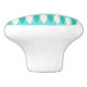 This Mid Century Modern Argyle Ceramic Pull (small print) features a vibrant, turquoise background and a pattern of mod, translucent teal diamonds overlaying larger, vintage cream diamonds with gold coloured, space age speckles. This minimalist inspired, deconstructed argyle is a simplistic throwback of the larger than life atomic era that dominated the decorating landscape of the 1950s and 1960s. This kitschy design is reminiscent of everything from retro Palm Springs’ bowling alley signs to the television trays you used at your grandma’s house.