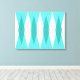 This Mid Century Modern Argyle Stretched Canvas features a vibrant, turquoise background and a pattern of mod, translucent teal diamonds overlaying larger, vintage cream diamonds with gold coloured, space age speckles. This minimalist inspired, deconstructed argyle is a simplistic throwback of the larger than life atomic era that dominated the decorating landscape of the 1950s and 1960s. This kitschy design is reminiscent of everything from retro Palm Springs’ bowling alley signs to the television trays you used at your grandma’s house.