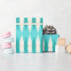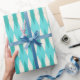 This Mid Century Modern Argyle Wrapping Paper features a vibrant, turquoise background and a pattern of mod, translucent teal diamonds overlaying larger, vintage cream diamonds with gold coloured, space age speckles. This minimalist inspired, deconstructed argyle is a simplistic throwback of the larger than life atomic era that dominated the decorating landscape of the 1950s and 1960s. This kitschy design is reminiscent of everything from retro Palm Springs’ bowling alley signs to the television trays you used at your grandma’s house.