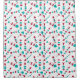 This shower curtain has a mid-century modern design of arrows made from lines with different turquoise and beet-coloured shapes attached, on a field of white. Want the same design with different colours? Message me.