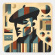 Mid Century Modern Art Man Wearing A Beret Square Sticker