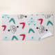 This towel set has a mid-century atomic modern design of boomerang shapes, antennae, and starbursts in teal, magenta, blue, and black.