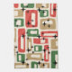 A festive mid-century composition featuring red, gold, and green rectangles scattered across a soft beige background, punctuated by crisp black starbursts. The geometric layout evokes vintage holiday wrapping paper and atomic-era ornamentation, blending bold shapes with twinkling accents. The palette channels cozy retro cheer, while the rhythmic repetition of forms adds a playful, celebratory energy—perfect for Christmas décor with nostalgic flair and graphic charm.