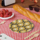 Mid Century Modern Atomic Drops Pattern Mustard Paper Plate