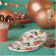 Every day can be a blast from the past with this mid century modern inspired paper plate. The design features a replica of a vintage atomic mobile fabric pattern. The background is ecru with blue, orange, green and black modern art shapes. This is the ideal paper plate for any occasion with a mid century modern flair!