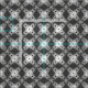 Mid-Century Modern ‘Atomic” geometric pattern of concentric elliptical rings - shades of silver grey / grey and white on a deep charcoal grey background