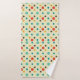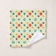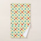 Mid-Century modern bathroom towel. Polkadots and circles pattern. Colours: yellow, turquoise, brown and orange.