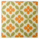 This artwork features a playful repeating floral pattern built from bold, stylized shapes. Orange and green four‑petal flowers alternate in a tight grid, each centered with a simple circular dot that adds rhythm and balance. The light beige background softens the palette and enhances the retro charm, giving the pattern a warm, mid‑century feel. Its symmetry, color contrast, and clean geometry make it ideal for textiles, stationery, or any design that leans into cheerful, vintage‑inspired aesthetics.