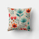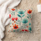 Mid Century Modern, Blue And Orange Flowers Cushion