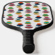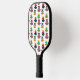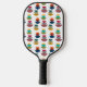 This pickleball paddle has a mid-century modern design of semicircles stacked in three in retro colours on a field of white. Want the same design with different colours? Message me.