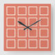 Elevate your living space with this striking wall clock featuring a bold terracotta orange face and a sophisticated ivory geometric grid pattern. The clean, tile-inspired design offers a perfect balance of mid-century modern style and contemporary warmth, making it an ideal accent for a kitchen, office, or gallery wall. Its rich earthy tones and minimalist aesthetic bring an inviting, architectural touch to any modern home decor.