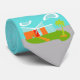This Mid Century Modern Cartoon House Neck Tie will have you wanting to put out the WELCOME mat and make yourself at home! The 1960's, minimalist art design features a sleek, orange stone and aqua glass house on a lush, green, boomerang shaped lawn. The lawn forms an oasis in the middle of its grey, concrete surroundings. A green palm tree is swaying in the breeze. Four, orange stepping stones lead the way to the retro, red, front door with three, rectangular, glass window panes. To the left of the door, a turquoise flowerpot holds a tropical, green plant. The house has a sloping, V shaped white roof that is pointing towards two, white, kidney bean shaped clouds. The sky is a positively serene shade of aqua. No one will want to throw stones from this modern, glass house design! Buy this kitschy, space age product and be the coolest cat on your block!