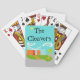 These Customisable Mid Century Modern Cartoon House Playing Cards will have you wanting to put out the WELCOME mat and make yourself at home! The 1960's, minimalist art design features a sleek, orange stone and aqua glass house on a lush, green, boomerang shaped lawn. The lawn forms an oasis in the middle of its grey, concrete surroundings. A green palm tree is swaying in the breeze. Four, orange stepping stones lead the way to the retro, red, front door with three, rectangular, glass window panes. To the left of the door, a turquoise flowerpot holds a tropical, green plant. The house has a sloping, V shaped white roof that is pointing towards two, white, kidney bean shaped clouds. The sky is a positively serene shade of aqua. Personalise for a one of a kind gift. No one will want to throw stones from this modern, glass house design! Buy this kitschy, space age product and be the coolest cat on your block!
