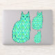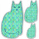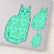 Sticker of a Mid-Century Modern, retro cat design, in an abstract ribbon pattern - mint, lime green, aqua and turquoise, outlined in dark teal