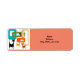 These return address labels have a mid-century modern design of retro cats and rectangles in retro colours. Fun for cat enthusiasts!