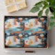 Tissue paper in a mid-century modern-inspired design featuring two stylised cats in bold, geometric shapes of orange, teal, black, and white. Abstract patterns and retro shapes fill the background, giving it a fun, vintage vibe with a minimalist edge.