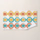 This towel set has a mid-century modern design of circles connected together making a chain with white and coloured circles inside. Want different colours? Message me.