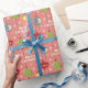 Make Christmas extra special with this retro wrapping paper featuring a pink background covered in blue, red, yellow and green Christmas ornaments. Team with the matching ribbon, tag and gift bags.