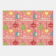 Make Christmas extra special with this retro wrapping paper sheet set featuring one sheet with pink background covered in blue, red, yellow and green Christmas ornaments, one sheet of Christmas ornaments and one sheet of pink background with snowflakes. Team with the matching ribbon, tag and gift bags.