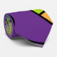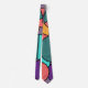 This tie has a mid-century modern collage design of circles, half-circles, and quarter circles in, blue, green, yellow, and pink.