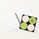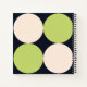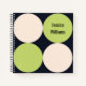 A stylish spiral-bound notebook with mid-century modern circles design on the cover. The circles are pink and green on a blue-black background, giving a bold and simple look. Personalise with the recipient's name for the finishing touch.