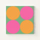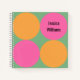 A stylish spiral-bound notebook with mid-century modern circles design on the cover. The circles are pink and orange on a sage green background, giving a retro cool effect. Personalise with the recipient's name for the finishing touch.