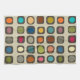 A retro 1950s style abstract art pattern with bright and colourful buttons inside of squares.