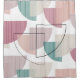 An atomic era-inspired abstract art design with colourful quarter circles in desaturated red, green, orange and yellow.