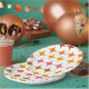 This is elegant abstract mid century starbursts pattern in orange, red, pink and brown over white background. It's great looking plate for parties and occasions