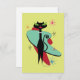 This cool girl cat is ready for a night on the town. She has her pearls on and her green cat eye glasses. Background is atomic shapes in multiple colours.
