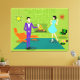This Mid Century Modern Couple Stretched Canvas Print looks like a scene out of a romantic comedy. The 1960's style, minimalist art design features an attractive cartoon couple enjoying a romantic evening at home. The sophisticated room prominently features a green stone wall with a roaring fire in the fireplace. The furnishings in the room include an orange, lounge chair with matching footstool, a red, starburst wall clock, a yellow, sputnik light fixture, and an orange side table, which is home to a green, portable record player. On the floor beside the end table, a vinyl record can be seen poking out of a kitschy album cover. In the centre of the green flooring, there is a large, rectangular, teal rug. In the middle of the scene, we have a very sophisticated couple. There is a suave man in a purple suit, white shirt and blue bow tie. The tall, dark and handsome man is gazing at his lovely companion. The elegant, raven haired woman is wearing a flouncy aqua dress. They are each holding a crystal martini glass with a floating olive. Cheers! Here's to the perfect evening at home!