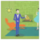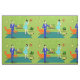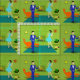 This Mid Century Modern Couple Fabric looks like a scene out of a romantic comedy. The 1960's style, minimalist art design features an attractive cartoon couple enjoying a romantic evening at home. The sophisticated room prominently features a green stone wall with a roaring fire in the fireplace. The furnishings in the room include an orange, lounge chair with matching footstool, a red, starburst wall clock, a yellow, sputnik light fixture, and an orange side table, which is home to a green, portable record player. On the floor beside the end table, a vinyl record can be seen poking out of a kitschy album cover. In the centre of the green flooring, there is a large, rectangular, teal rug. In the middle of the scene, we have a very sophisticated couple. There is a suave man in a royal blue suit, white shirt and blue bow tie. The tall, dark and handsome man is gazing at his lovely companion. The elegant, raven haired woman is wearing a flouncy aqua dress. They are each holding a crystal martini glass with a floating olive. Cheers! Here's to the perfect evening at home!