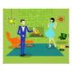 This Mid Century Modern Couple Photo Paper looks like a scene out of a romantic comedy. The 1960's style, minimalist art design features an attractive cartoon couple enjoying a romantic evening at home. The sophisticated room prominently features a green stone wall with a roaring fire in the fireplace. The furnishings in the room include an orange, lounge chair with matching footstool, a red, starburst wall clock, a yellow, sputnik light fixture, and an orange side table, which is home to a green, portable record player. On the floor beside the end table, a vinyl record can be seen poking out of a kitschy album cover. In the centre of the green flooring, there is a large, rectangular, teal rug. In the middle of the scene, we have a very sophisticated couple. There is a suave man in a royal blue suit, white shirt and blue bow tie. The tall, dark and handsome man is gazing at his lovely companion. The elegant, raven haired woman is wearing a flouncy aqua dress. They are each holding a crystal martini glass with a floating olive. Cheers! Here's to the perfect evening at home!