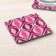 Coasters in a Mid-Century Modern diamond pattern of nested marquise shapes - deep rose and pastel pink, with burgundy / maroon, and white accents