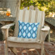 Outdoor pillow with a Mid-Century Modern diamond grid of nested marquise shapes - medium denim blue and light sky blue, with white, and dark navy / indigo accents