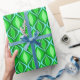 Wrapping paper with a Mid-Century Modern diamond grid of nested marquise shapes - deep emerald green and lime green, with pastel green, and aqua accents