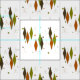 Mid-Century modern diamonds pattern in colours of brown, green and orange with starbursts and circles on a white background. All graphics by Gail Gabel, LLC.