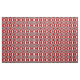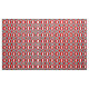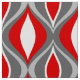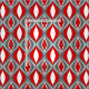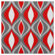 Fabric in a Mid-Century Modern diamond pattern of nested marquise shapes - light silver grey / grey and graphite grey with deep Chinese red, and white accents