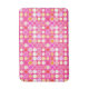 Mid-century Modern graphic design bath mat - large, retro bordered dots in warm pastels on deep, fuchsia pink